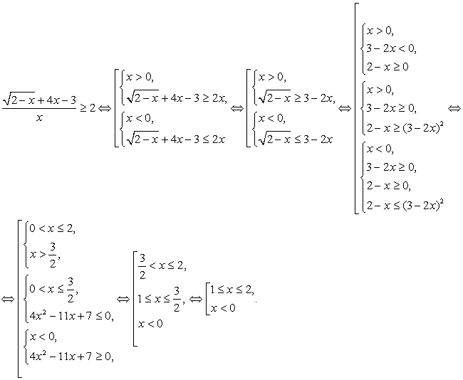 Комментарий. Можно было решить это неравенство и без применения метода введения новой переменной, рассмотрев отдельно (в совокупности) случаи, задаваемые условиями х > 0 и x < 0. Приводим запись такого решения: