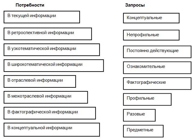 Укажите стрелками соответствие между потребностями в определенной информации и теми запросами, которыми выражается соответствующая потребность.